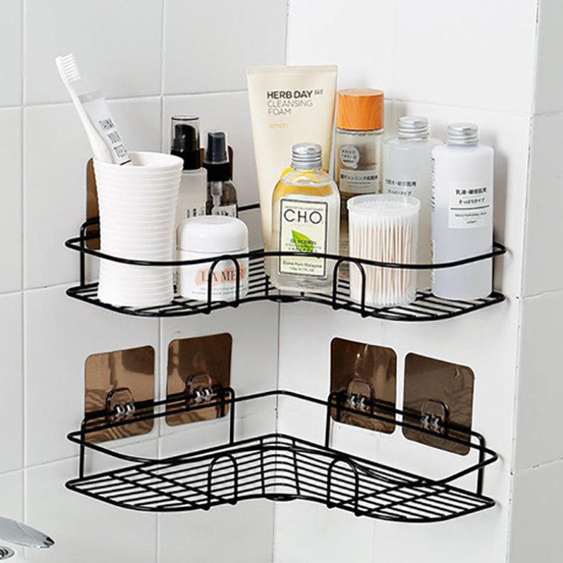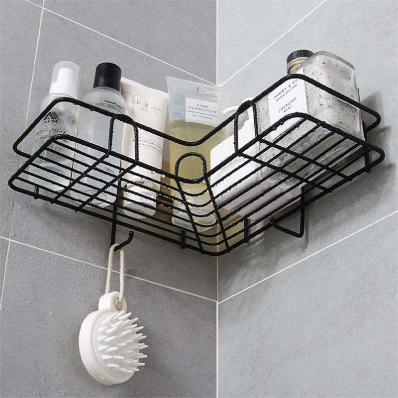 Bathroom Shelf Wall Mounted Corner Storage Shelves Shampoo Holder Cosmetic Rack Iron Shower Drain Basket Bathroom Organizer